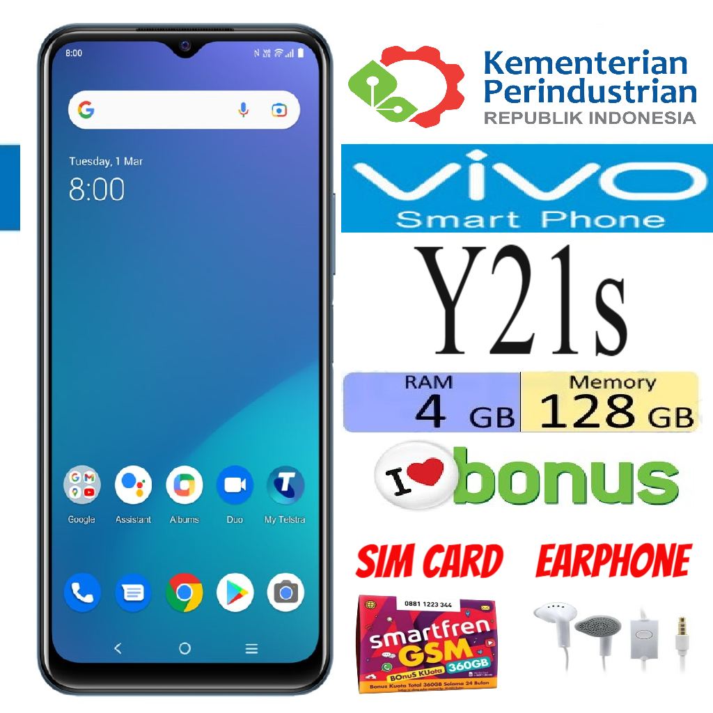 HP ANDROID VIVO Y21S RAM 4/128 GB Fullshet - Bergaransi Toko Harga 1,293,500 rupiah