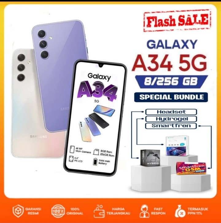 Promotion! !! Samsung A34 5g 8/128 Gb and 8/256 Gb Nfc Technology: Super Amoled+, 90Hz - Free Sim Card Harga 2,950,000 rupiah
