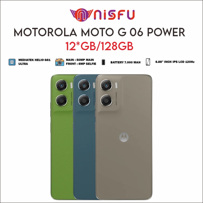 Motorola Moto G06 power 128GB ramboost 12GB - 6.88 "-7000mah-50MP pro mode-dolbystereo-gorillaglass3 IP64-watertouch-NFC Harga 1,599,000 rupiah