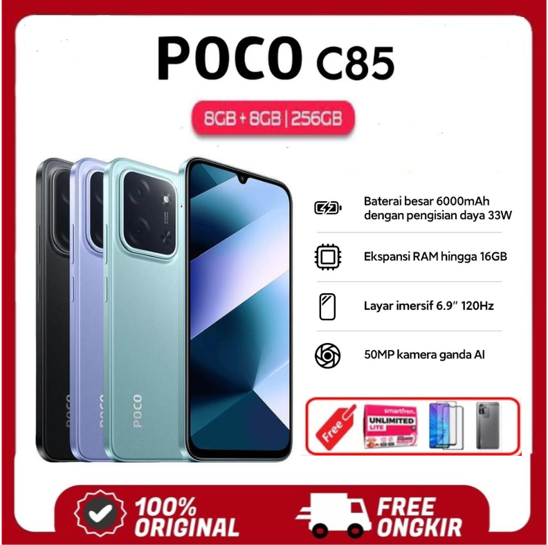 Xiaomi POCO C85 6/128GB 8/256GB Baterai 6000mAh 33W | Ekspansi RAM hingga 16GB | Layar 6.9" 120Hz Garansi Resmi Xiaomi Indonesia TAM Harga 1,840,000 rupiah*Gratis Ongkir